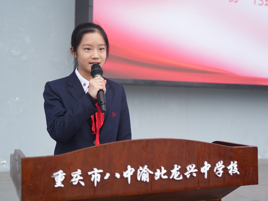 3月31日清晨,重庆市八中龙兴中学校全体师生在春风中齐聚一堂,举行了2025—2026学年下期第5周的升旗仪式。本次升旗仪式以“缅怀先辈承初心,友善文明展风采”为主题,旨在深切缅怀革命先辈与英烈,传承红色精神,同时培养学生友善待人、文明守纪的良好品德,营造和谐友爱的校园氛围。