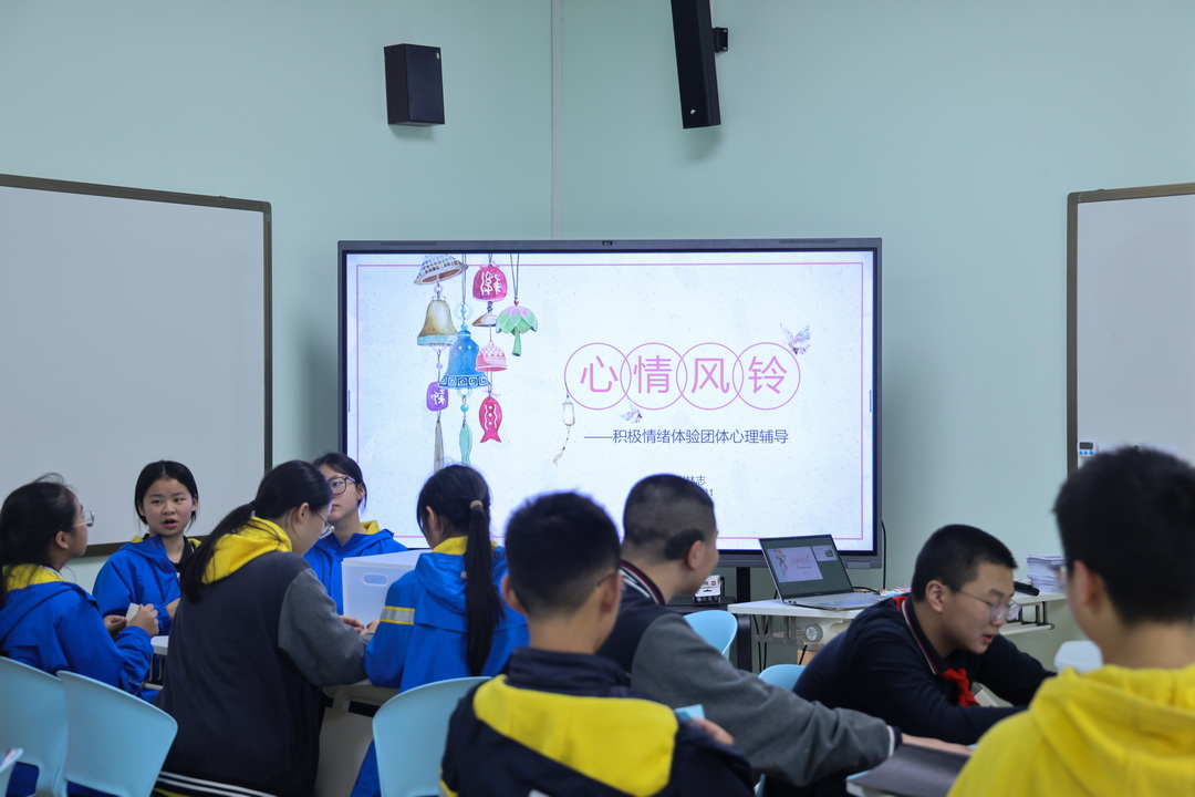 在分享环节,学生们围坐在一起,围绕“我在玻璃罩上画了什么”“我的纸片上写了什么”“千纸鹤代表什么”等话题进行坦诚交流。活动尾声,伴随着轻柔的风铃声,学生们在引导中闭目静思,想象自己的风铃在风中摇曳发声。谢老师指出,风铃如同每个人的内心状态——有时风大响急,有时安静无声,但它始终在那里,属于自己。所有完成的作品将被收集悬挂于心理中心长廊上,成为持续陪伴学生的积极心理资源。