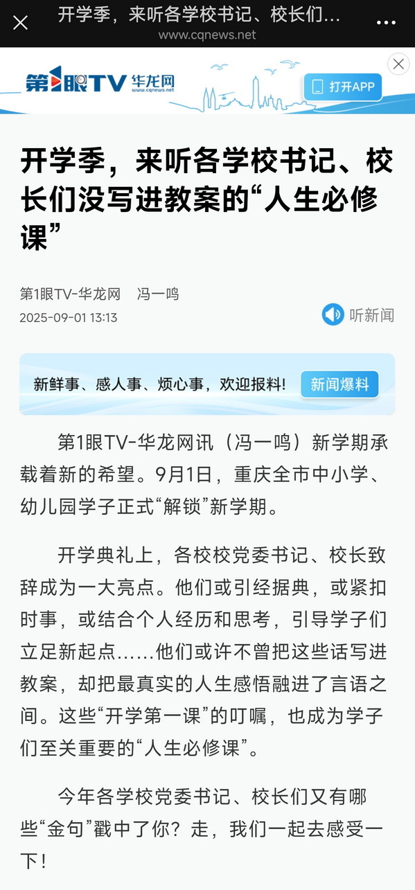 第1眼TV-华龙网讯(冯一鸣)新学期承载着新的希望。9月1日,重庆全市中小学、幼儿园学子正式“解锁”新学期。