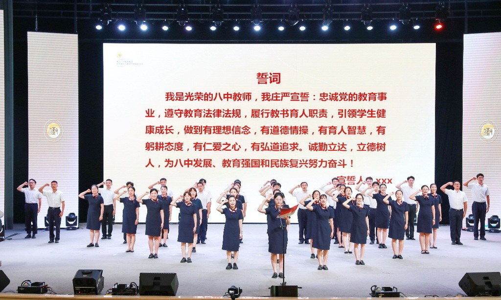师者情怀映初心,教育强国铸未来大会尾声,全场教师重温教育誓言,誓言声铿锵有力,激荡着“以教强国”的坚定信念。重庆八中始终秉持“育人为本”的理念,将教师队伍建设作为立校之本。此次表彰大会不仅是对优秀教师的礼赞,更是对全体教育工作者的激励。站在新时代教育强国的征程上,八中教师将以教育家精神为指引,以幸福教育为路径,继续书写“立德树人”的崇高使命,为培养堪当民族复兴大任的时代新人砥砺前行。
