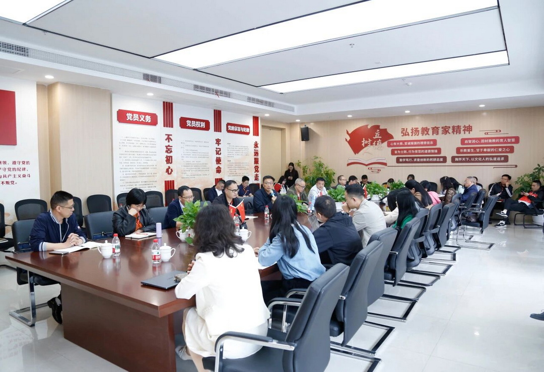 参观结束后,校长团移步会议室。副校长崔敏从总体方略、智慧党建、德育创新、课程建设、课堂提质、教师发展、数字赋能这七个方面向校长团介绍了集团化办学背景下两江八中“六维进阶 卓越发展”的校本实践探索。