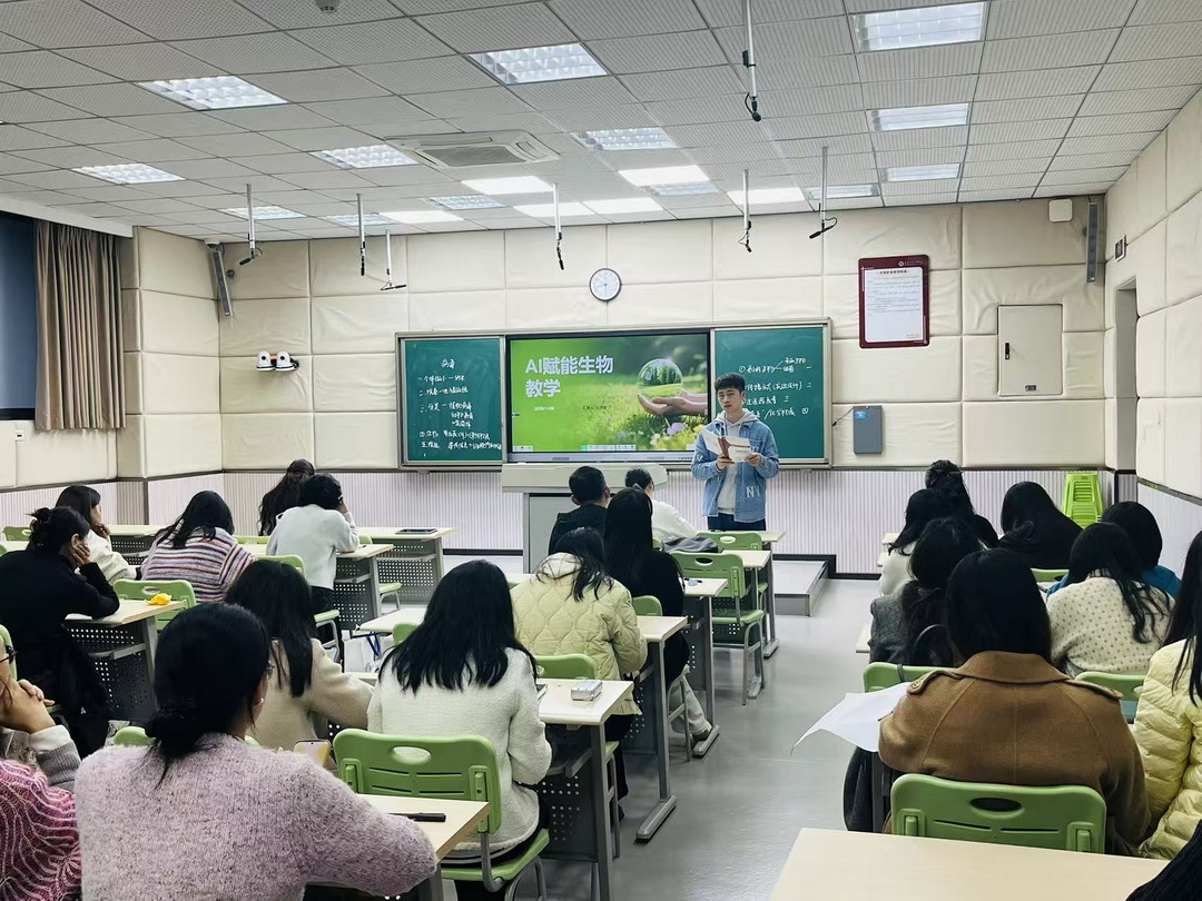初2028届年级副主任钱仁孟老师结合自身教学经历,肯定了AI技术的普适性价值:“我在日常教学中也尝试过各类AI工具,郑老师的课让我更清晰地看到,技术能够突破学科界限,让抽象知识具象化、复杂过程简易化。这堂课既是对学校“关注学习过程,促进学习真实发生”理念的深度践行,也是“共听、共研、共鸣、共进”教研要求的生动落地。”
