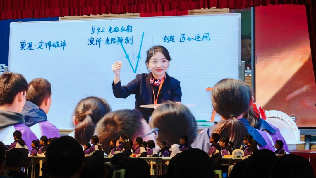 日前,重庆市2025年初中物理青年教师优质课大赛决赛在长寿中学举行。重庆八中宏帆中学张琳林老师作为参赛选手,其执教的《光的反射》一课,以“成为光之掌控者”为主题,凭借精彩的教学设计、精湛的教学技艺与自然的课堂互动,赢得了评委与观摩教师的一致好评,荣获一等奖!