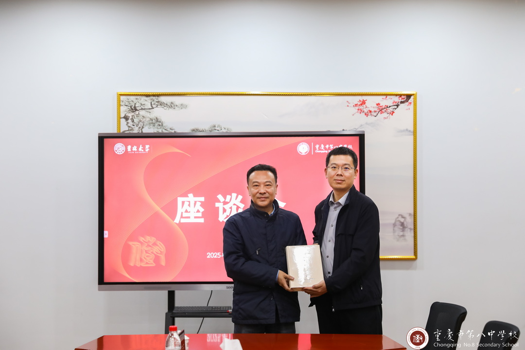 2025年11月17日下午,吉林大学与重庆市第八中学校在重庆八中沙坪坝校区行政楼3楼接待室举行座谈交流会。吉林大学交通学院院长别一鸣、重庆研究院副院长罗怀勇(重庆八中2004级校友)、重庆八中校长卿知人、副校长梅家烨、高一年级主任王舟、高二年级主任陈方玉参与了座谈交流。双方围绕人才培养、招生合作及大中衔接机制建设等议题展开深入探讨。会议由重庆八中高三年级支部书记刘钊主持。