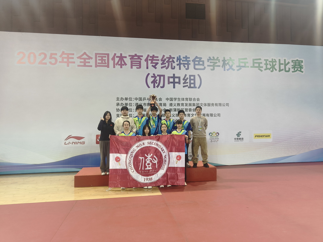 从贵州省遵义市奥体中心传来振奋人心的消息——在2025年12月4日至9日举办的全国体育传统特色学校乒乓球比赛(初中组)中,重庆八中校乒乓球队历经六天的激烈角逐,凭借扎实的技术功底与顽强的拼搏精神,在全国47支劲旅、290名顶尖选手的同台竞技中脱颖而出,斩获男子团体季军、男子单打第五名等多项殊荣,更成功拿下四张乒乓球一级运动员技术等级证书,为重庆争光,为学校添彩。
