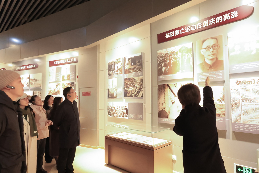在“抗战岁月”展厅,泛黄的文献、珍贵的实物与生动场景复原,全景再现中华民族浴血奋战历程。党员们驻足聆听讲解,了解当年重庆社会各界开展抗日救亡运动的情况,感悟川渝军民支援前线的热血壮举与知识分子的家国情怀,进一步坚定铭记历史、珍爱和平的信念。