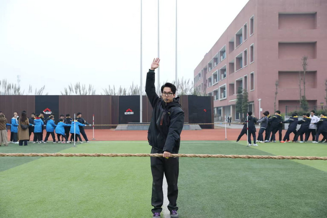 冬日的夕阳为运动场镀上一层金辉,大家冻红的双手因用力而微微颤抖,却仍死死攥住绳索。啦啦队中,有人举着自制的加油牌蹦跳欢呼,有人扯着嗓子喊到声嘶力竭,甚至有班级自发组成“后勤小队”,为选手递水、揉肩、加油打气。当十班最终夺冠的哨声响起,全场爆发出雷鸣般的掌声,队员们相拥庆祝,班主任被围在中间,这一刻,胜负已不再重要,班级的荣誉感与归属感在每个人心中升腾。