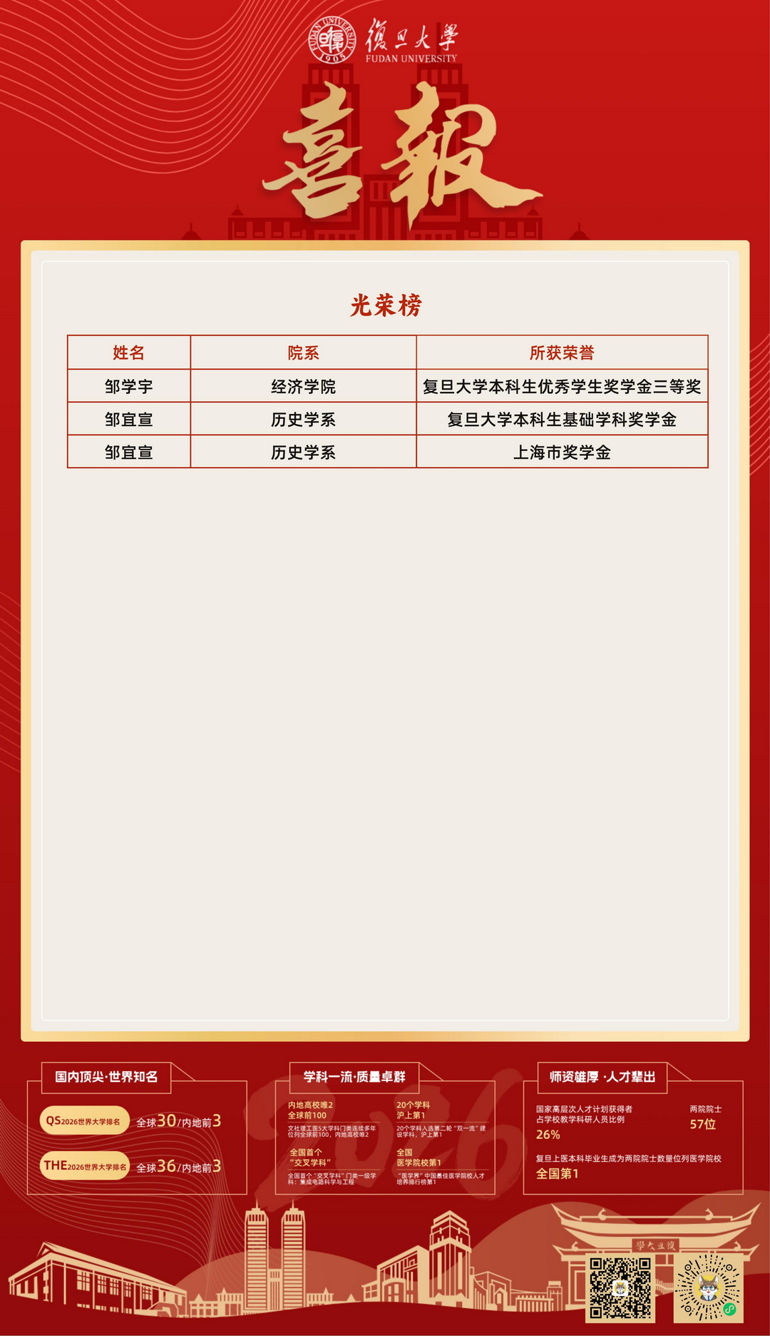 复旦大学喜报