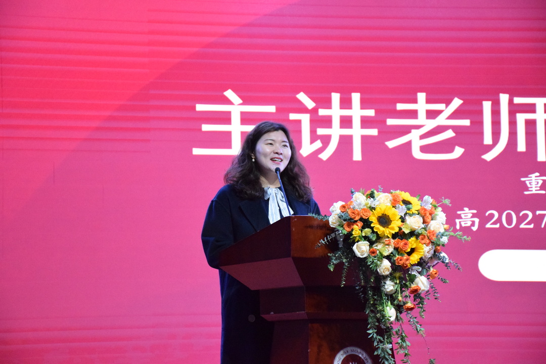 白亭老师作为教师代表,用课堂小故事为引,激励学子马年奋进,全力以赴新学期。她亲切提醒学子:“第一,允许自己慢一点,但不要停下来;第二,遇到坎儿的时候,先迈一步试试;第三,记得回头看看,那些托举你的人”,并表示,虽然相隔屏幕,始终与大家心心相连,新的学期继续云端相伴,坚定同行。