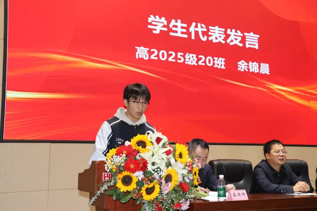 学生代表余锦晨谈到,作为首届双师班学生,他倍感荣幸!双师课堂让大家足不出校即可共享重庆八中优质教学资源,他代表全体同学向学校和老师们致以诚挚感谢,并承诺将倍加珍惜双师班的学习机会,以梦为马,不负韶华,不断提高自身素质,努力成长为一名和悦宽博、勇毅担当的时代新人!