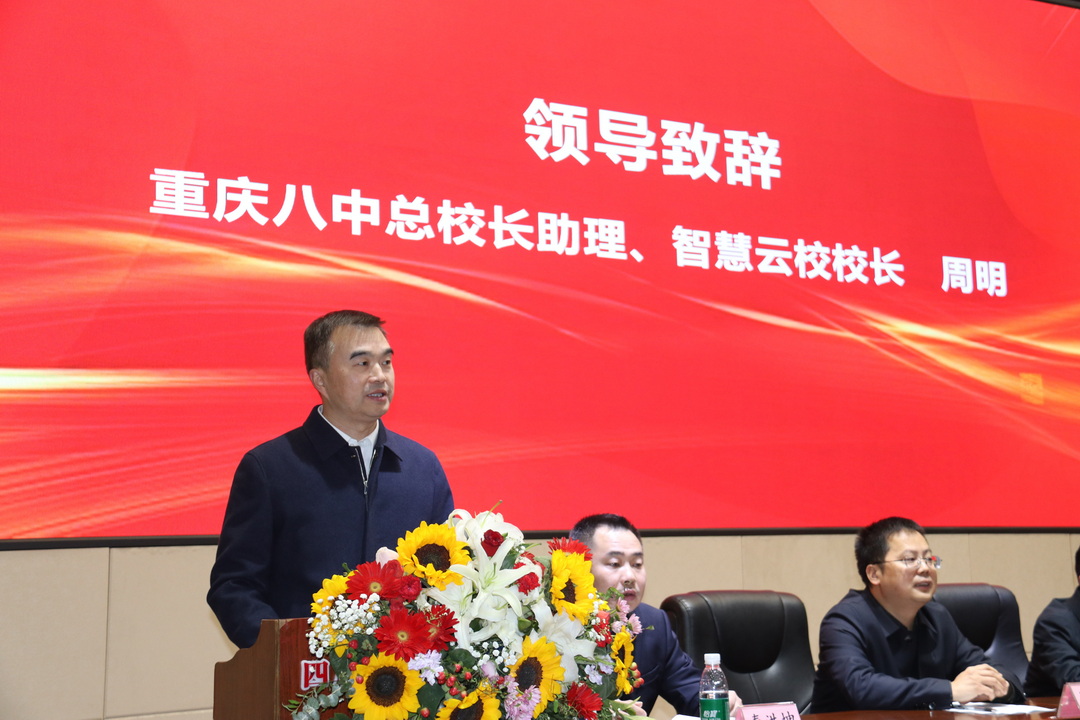 周明校长发言表示,对双师班项目的前景充满信心,重庆八中将充分发挥自身优势,与邻水二中在教学教研、师资建设、高考备考、拔尖创新人才培养等方面深度融合,共同打造区域教育合作的典范。他强调,此次合作将聚焦三大方向:一是资源共享、智慧共生,依托AI技术创新数智赋能资源建设;二是教师发展、成长共赢,构建跨校协同发展机制;三是文化交融、特色共显,互鉴校园文化并完善融合评价体系,全力为邻水二中注入发展动能,助力“县中振兴”与区域教育均衡发展。