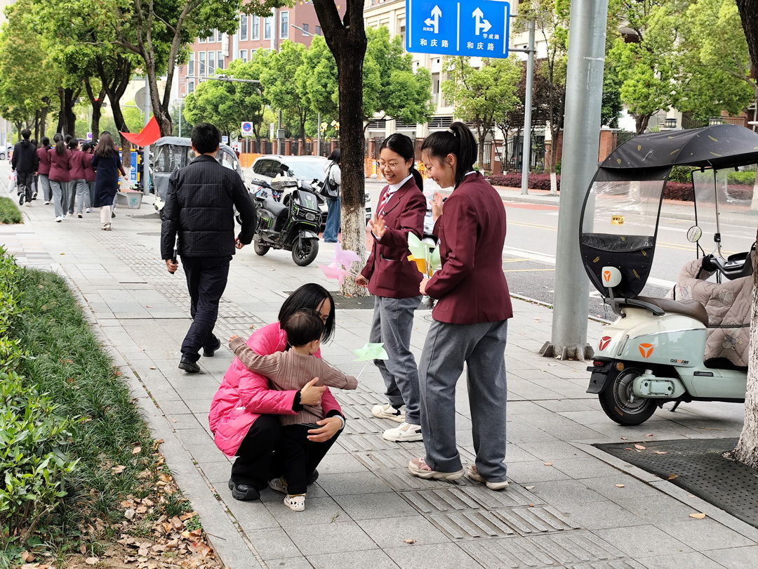 活动现场,幸福速递员们满怀诚意,向沿途的环卫工人、快递小哥、公园游客、商户店主等送上祝福与小礼物。面对这份突如其来的陌生善意,路人们纷纷露出惊喜笑容:有的欣然收下礼物,与学生合影留念;有的主动回以祝福,叮嘱学生学业进步;还有的路人停下脚步,与学生亲切交流,分享生活中的幸福点滴。遇到小朋友时,学生们还贴心送上彩色风车,让童真与美好相伴同行。随行的学生记录员全程用镜头定格每一个温暖的互动瞬间,认真记录下路人的微笑与暖心话语,让这份善意与美好有迹可循。下午16:30,两组学生顺利返程集结,大家迫不及待地分享活动中的暖心经历,在交流与回味中,真切感受着传递善意带来的幸福感。