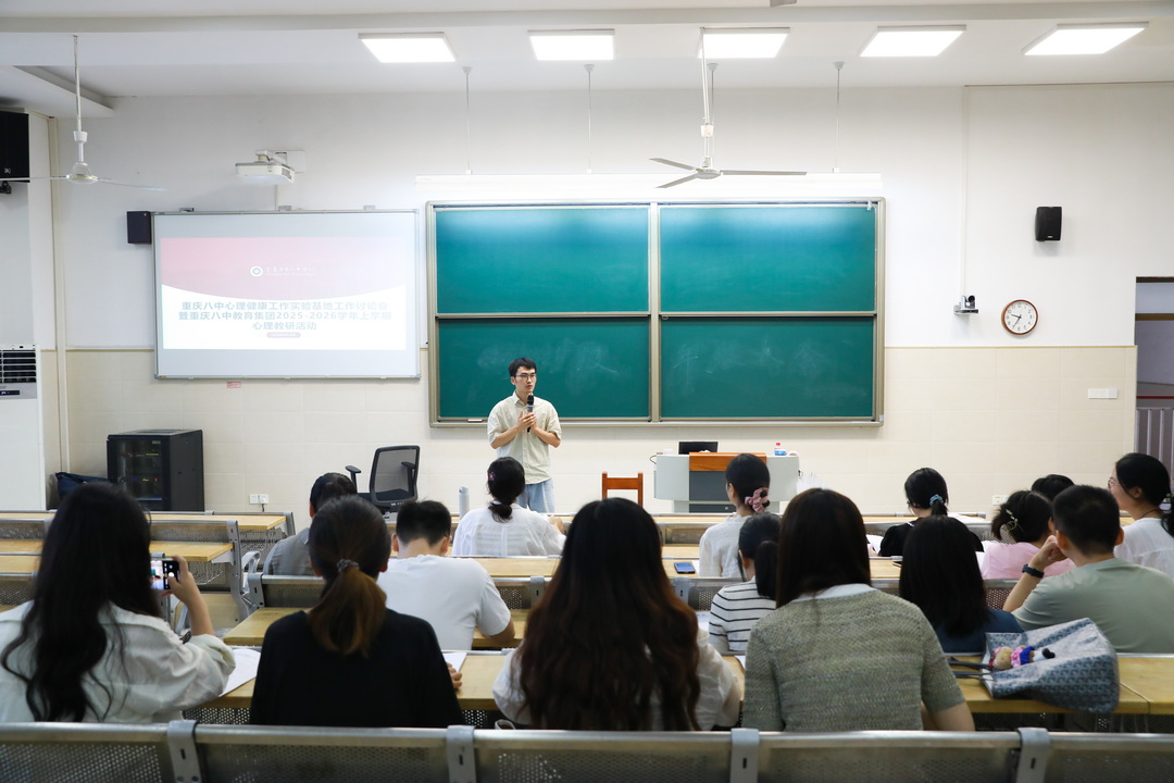 2025年9月19日,重庆八中心理健康工作实验基地工作讨论会暨重庆八中教育集团2025-2026学年上学期心理教研活动在渝北校区顺利开展,重庆八中副校长付英、心理教研组全体教师参加讨论会,本次教研活动由心理教研组组长王强老师主持。