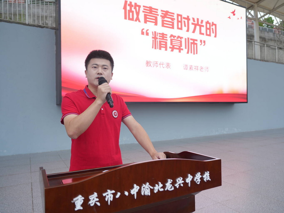 教师代表谭素祥老师也上台发言,他以《做青春时光的“精算师”》为题,分享了自己对时间的感悟与思考。他鼓励同学们在时间规划里养成良好的阅读习惯,让阅读成为与时间同行的伙伴,丰富自己的内心世界。谭老师的发言深入浅出,富有启发性,为同学们在时间管理的道路上指明了方向。