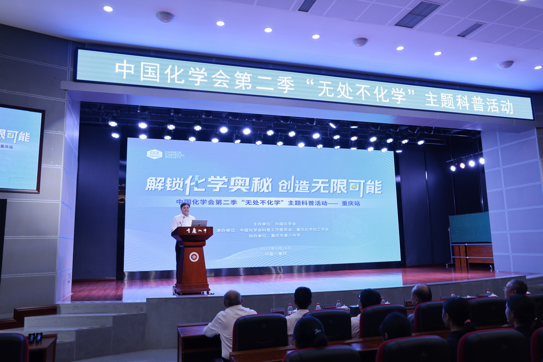 2025年9月24日,中国化学会第二季“无处不化学”主题科普活动走进重庆八中,为八中师生带来科普知识。据了解,中国化学会“无处不化学”主题科普活动为中国化学会倾力打造的科普品牌,通过组织“化学大家谈”科普报告、“化学家面对面”、“化学对对碰”、“玩转化学”科普探索课程等系列品牌活动,旨在打破知识壁垒,以通俗易懂、深入浅出的方式,向公众展示化学的深邃奥秘与广泛应用,激发公众对化学兴趣与好奇心,引导公众了解化学的无限魅力与潜力,提升公民化学素养,促进区域协调发展,助力科技强国建设。第二季“无处不化学”主题科普活动将持续至2026年8月。