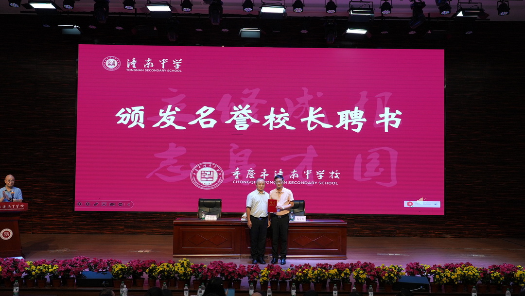 为持续深化与重庆八中教育共同体的合作发展,会上,潼南中学为梅家烨校长颁发名誉校长证书。