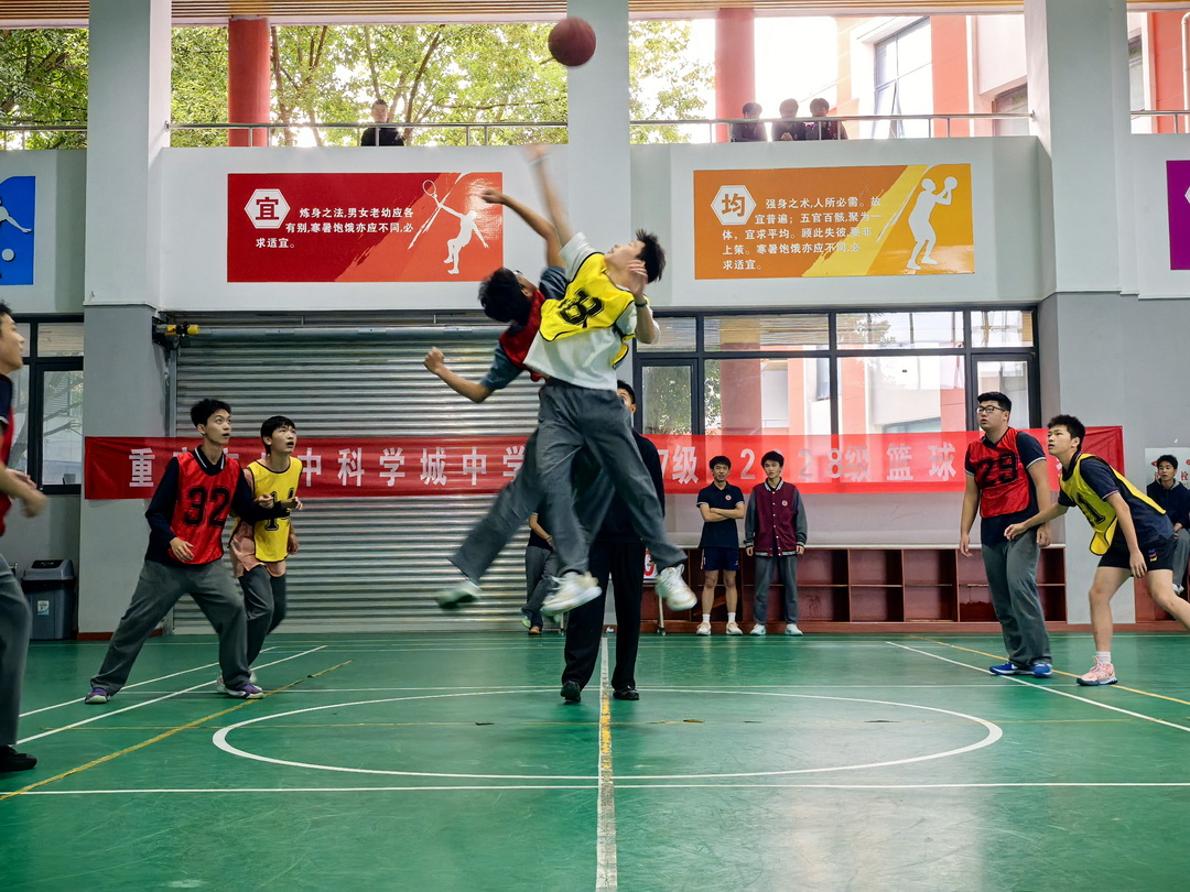 为丰富校园文化生活,增强年级间体育交流,近日,重庆市八中科学城中学室内篮球场内人声鼎沸、彩旗飘扬,2027级与2028级篮球友谊赛在此火热开赛。这不仅是一场体育竞技的比拼,更是一次青春活力的碰撞,为秋日的校园注入了滚烫的热血与激情。