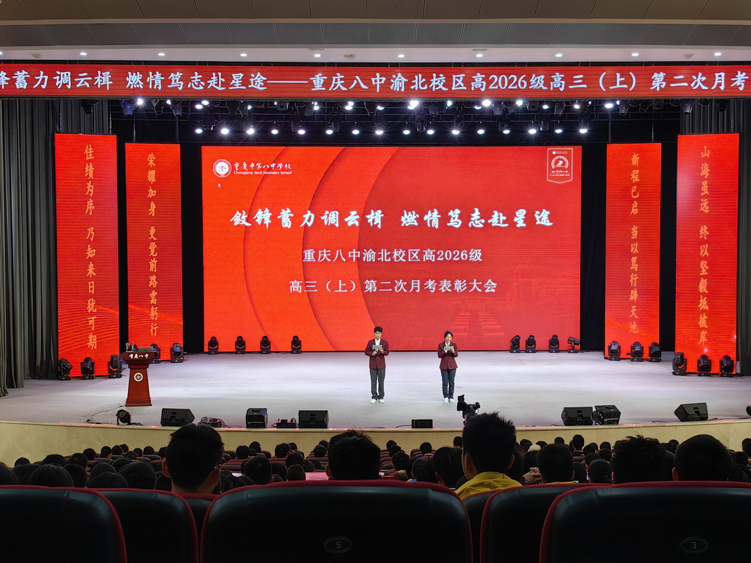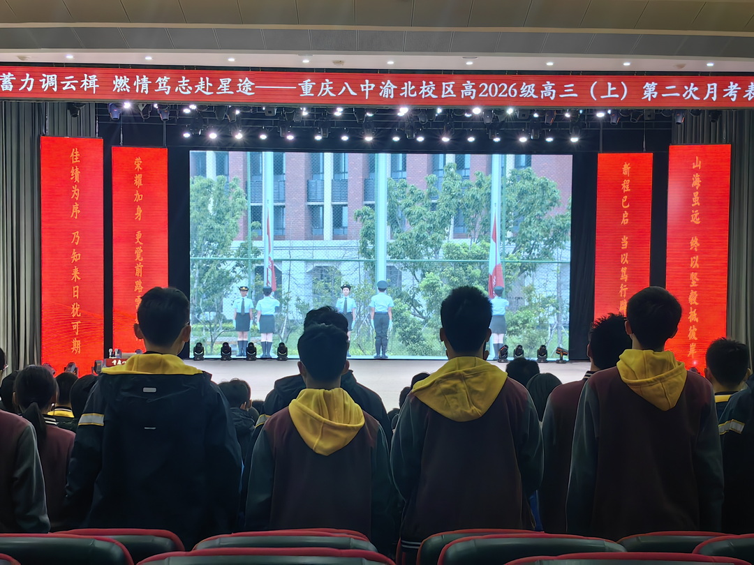 晨光熹微,国歌嘹亮。2025年10月28日,重庆八中渝北校区高2026级全体师生齐聚一堂,迎来了以“敛锋蓄力调云楫,燃情笃志赴星途”为主题的高三第二次月考表彰大会。这不仅是一场对过往奋斗的礼赞,更是一次对未来的郑重启航。