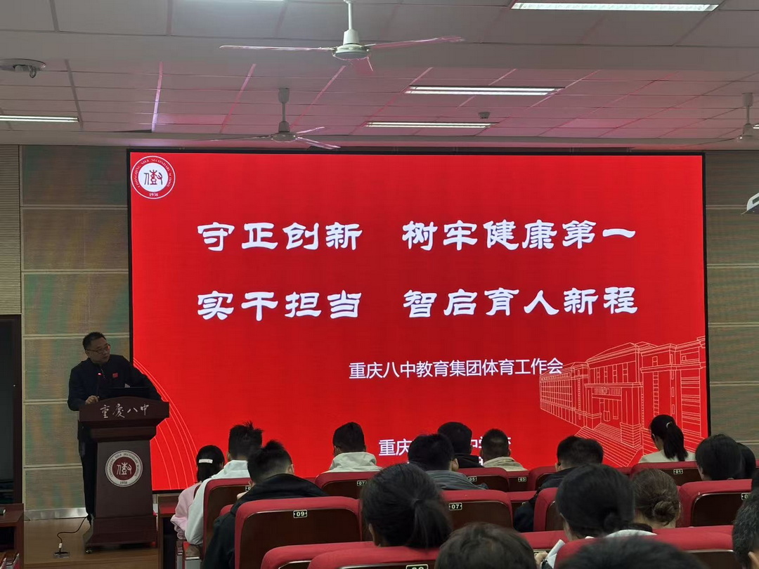为深入贯彻落实国家体育教育相关政策要求,坚守“健康第一”教育理念,践行“立德树人”根本任务,持续深化集团体育课程改革,全面提升学生体质健康水平,真正做到每个学生身上有汗,眼里有光。3月23日,重庆八中教育集团2026年春季体育工作会在树人堂顺利召开。集团相关领导、体卫处负责人及各校区体育教师齐聚一堂,共话体育育人初心,共绘集团体育工作新蓝图。