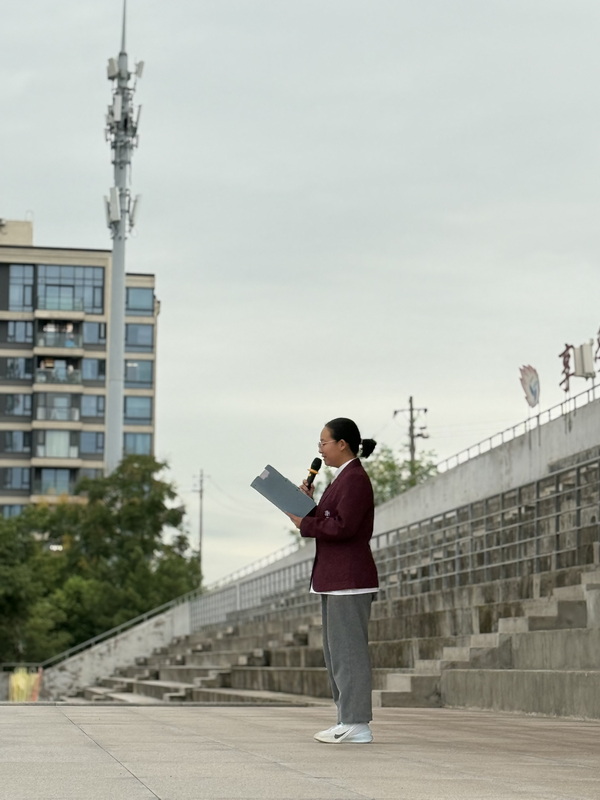 朝会现场,高2027届2班的周伯媛率先演讲,她以“什么是科技”为引,分享科学教育价值的三点思考。她提出,科学教育的核心在于引导同学们保持对世界的好奇、敢于提出疑问,在探索中打破认知边界;要学会打破学科壁垒、实现跨学科融合,用多元知识视角解决复杂问题;更要激发创作火花、勇于动手实践,让想法在实践中落地,将知识转化为改变世界的力量。真挚的分享引发台下师生阵阵共鸣,让“爱科学、学科学”的种子在心中扎根。