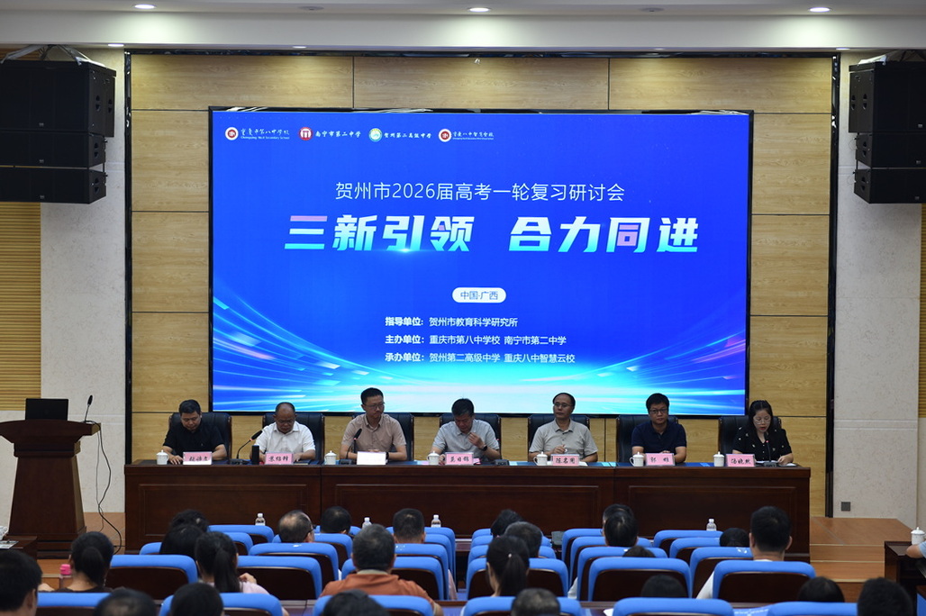 2025年9月20日,由贺州市教育科学研究所指导,重庆市第八中学校、南宁市第二中学主办,贺州第二高级中学、重庆八中智慧云校承办的“三新引领·合力同进——贺州市2026届高考一轮复习研讨会”,在贺州第二高级中学举行。