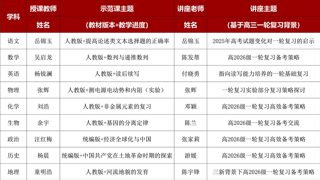 本次活动旨在落实重庆八中与潼南中学“教共体”建设项目服务协议,发挥重庆八中优质教育资源辐射作用,助力潼南中学精准把握2026届高考命题趋势,强化高三一轮复习科学性与针对性,帮助该校高三教师优化复习策略、完善计划,提升复习质量与学生备考效率。