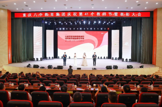中新网重庆新闻9月13日电(记者 贾楠)近日,重庆八中教育集团以“以教育家精神铸魂强师,谱写教育强国建设华章”为主题举行庆祝第41个教师节暨表彰大会。全校教职工齐聚一堂,共同庆祝这一属于教育者的节日。