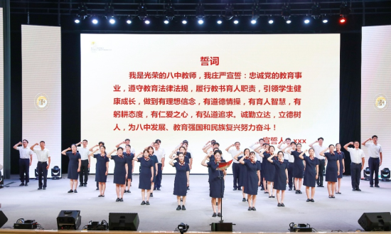 全场教师重温教育誓言,誓言声铿锵有力。活动相关负责人表示,此次表彰大会不仅是对优秀教师的礼赞,更是对全体教育工作者的激励。八中教师将以教育家精神为指引,以幸福教育为路径,继续书写“立德树人”的崇高使命。(完)