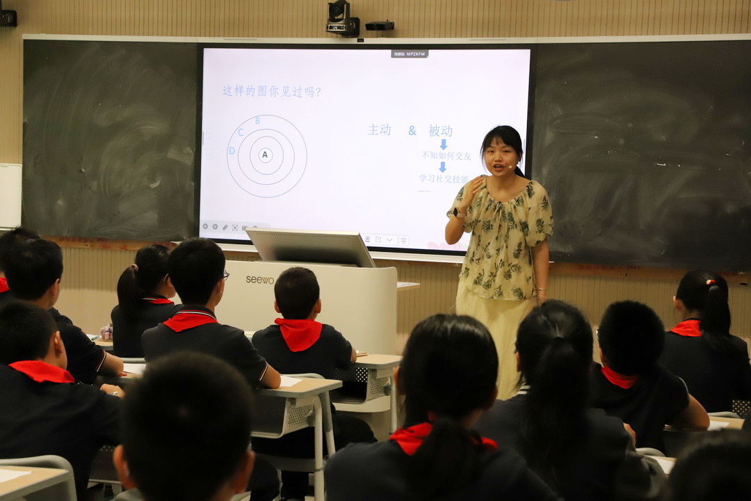 正式研讨前,树人中学的赵姣老师带来题为“我和我的朋友们”的示范课。课堂伊始,赵老师播放“I wanna be your friend”主题视频,引导学生反思自身交友模式,自然引出本节课核心主题。随后,她引入“人际关系圈”工具,帮助学生回顾、审视当下人际关系状况,并结合三条交友法则,启发学生领悟“以朋友需要的方式对待朋友”的深层意义。课程尾声,赵老师引导学生梳理“友谊手册”,鼓励大家发掘自身优势、反思友谊中付出与需求的平衡,进一步激发学生对未来人际交往的期待与规划。观摩结束后,心理教研组教师围绕本节课的教学设计与实施细节展开深入研讨。