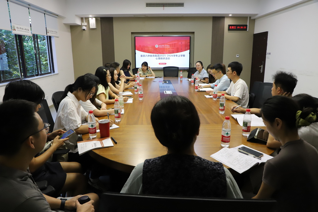 2025年10月10日,重庆八中教育集团2025-2026学年上学期心理教研活动在树人中学顺利开展。重庆市树人中学校校长杨振海、集团心理教研组全体教师参与研讨,活动由心理教研组组长王强老师主持。