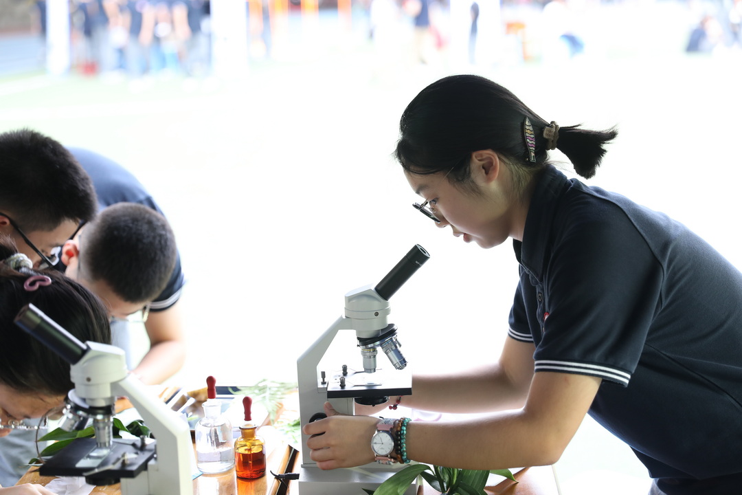 在生物学科展区,同学们通过芹菜叶柄、土豆条、花生子叶等进行徒手切片并制作成临时装片,用碘液染色、显微镜调焦等步骤,在载玻片上捕捉植物细胞的完美瞬间。参赛者需在90分钟内完成从撕取内膜到观察的完整流程,最佳作品将获得细胞结构清晰度与操作规范度的双重评分。