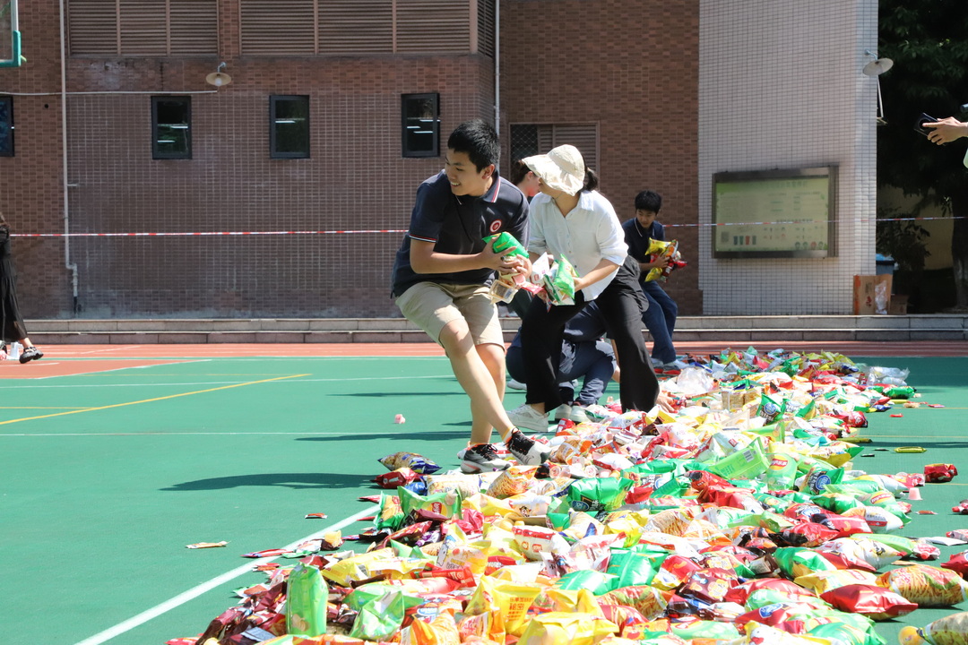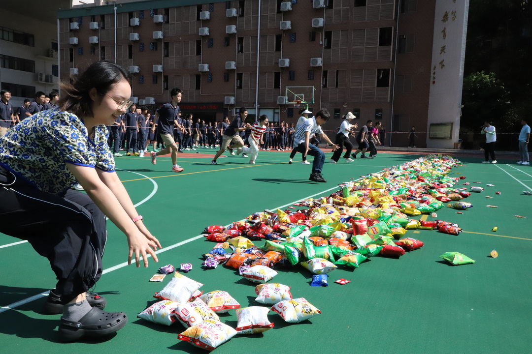 随着四轮游戏结束,操场上的零食很快被同学们“收入囊中”。活动全程充满欢声笑语,同学们的脸上洋溢着轻松的笑容,考试带来的紧张感一扫而空。