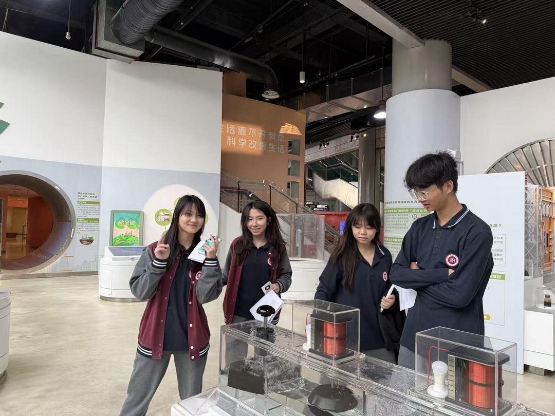 此次科技馆行走课堂精准契合了重庆八中国际部培养“全球视野 + 实践能力”人才的核心目标。在参观过程中,同学们带着预设问题探索展厅,将物理课中的力学原理与“趣味转盘”体验相对应,把化学中的物质变化知识与互动实验相联系,实现了课本理论与具象实践的深度转化,让书本知识真正“行走起来”、“活起来。”