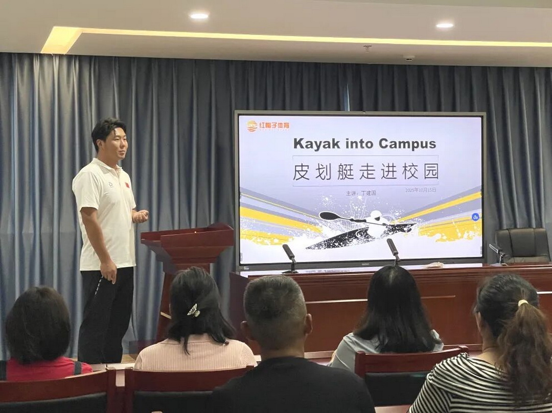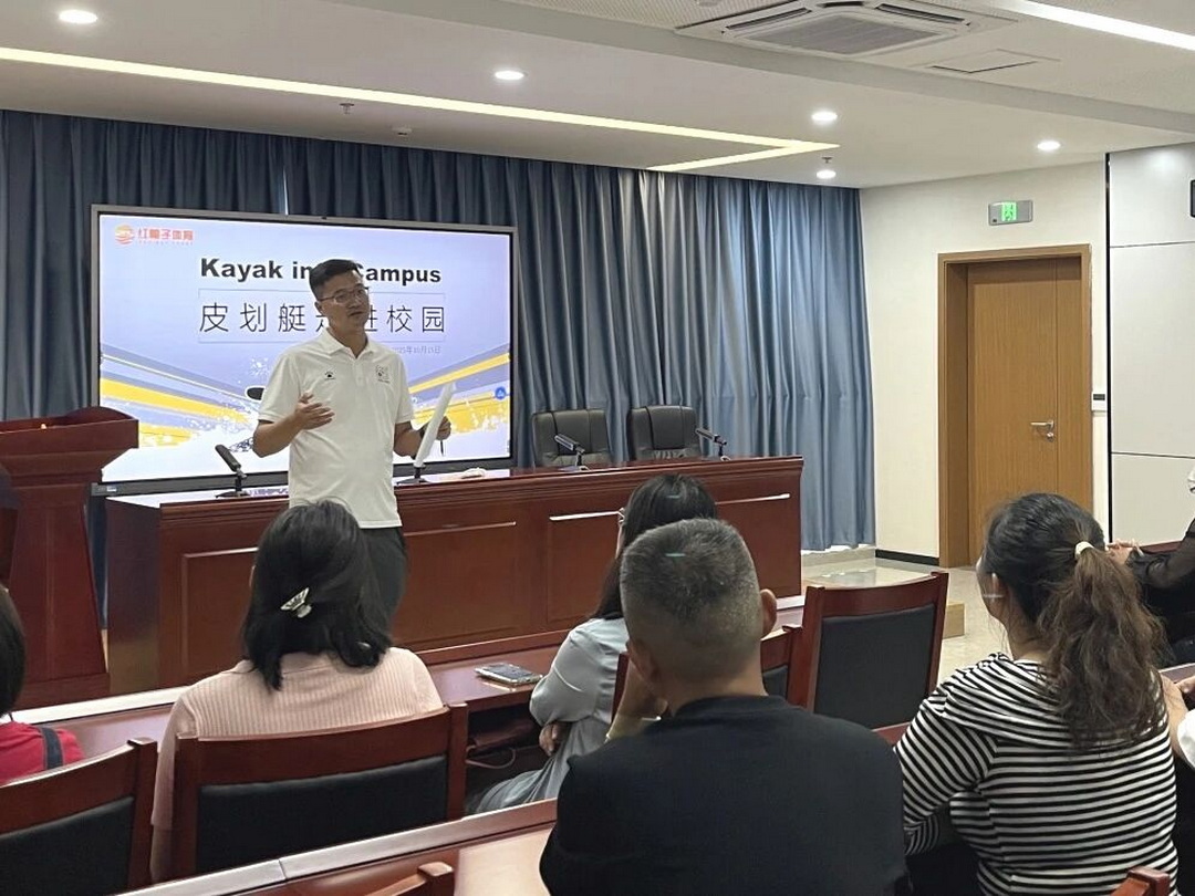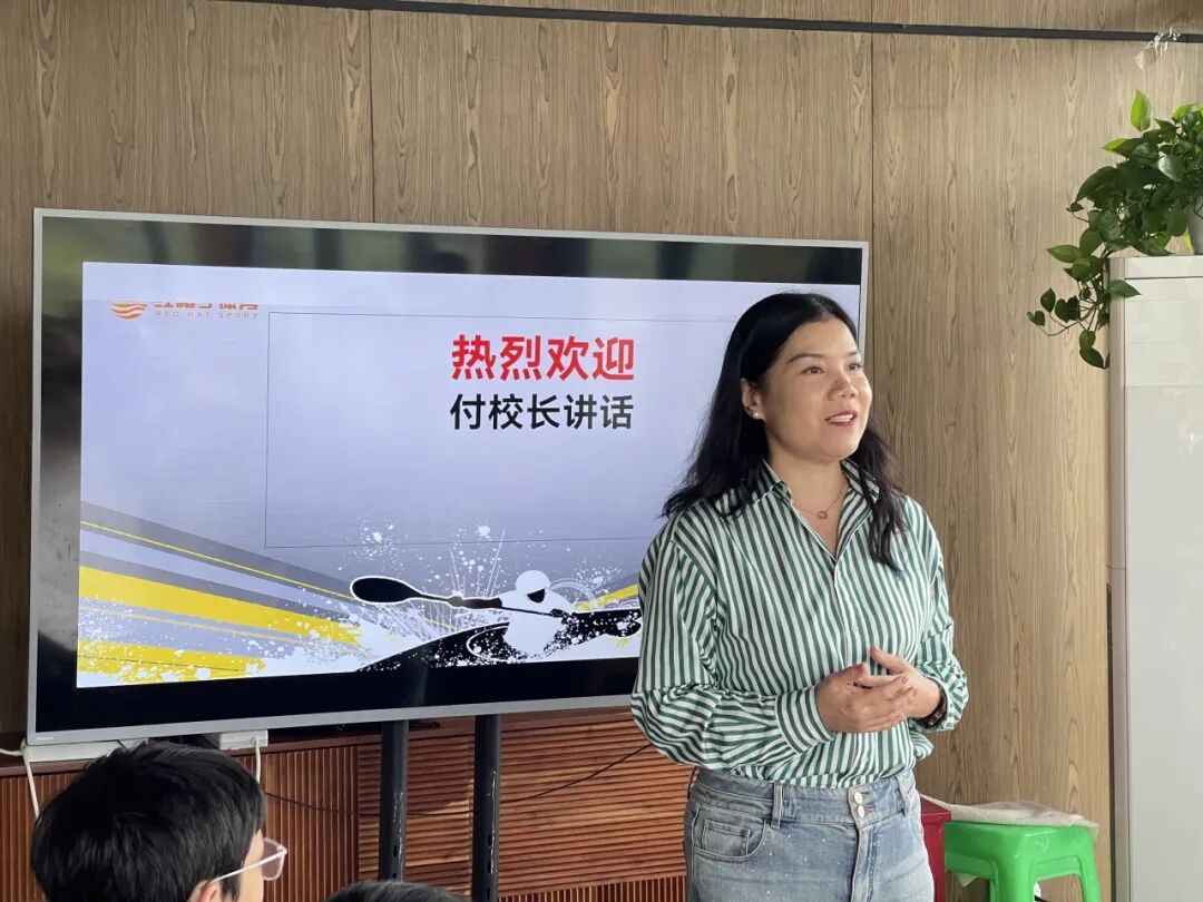 10月16日,八中龙兴中学率先召开“皮划艇运动进校园”主题家长宣讲会,特邀两名专业教练到场,为家长答疑解惑。会上,该校体卫处丁老师开篇点明校企合作核心目标:在教育改革背景下,学校正通过多元育人模式拓展学生成长空间,而皮划艇运动不仅能有效提升学生体能,更能在团队协作与水上挑战中锤炼意志,是学校推进体育教育创新的重要举措。