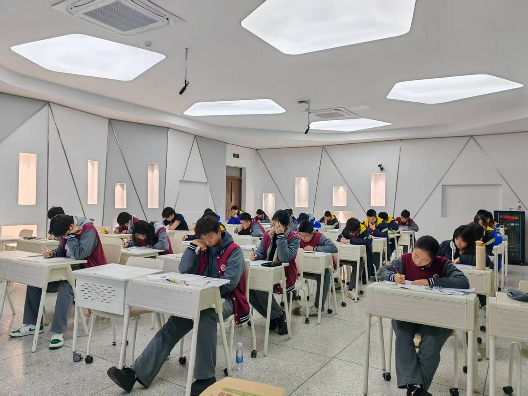 2025年11月6日,全球极具公信力的美国数学测评(AMC)在重庆八中国际部考点顺利举行。来自国际部高一、高二年级的学子与普高部分对数学学科抱有浓厚兴趣的同学踊跃参与,在75分钟的笔试中展开了一场兼具思维深度与创新挑战的学术角逐,考场内秩序井然。