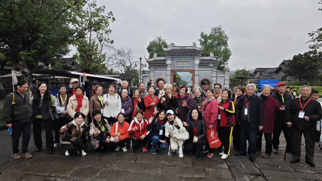 11月12日,重庆八中退休教职工及家属共50余人前往宜宾李庄、泸州桃花坞开展中老年研学拓展活动。