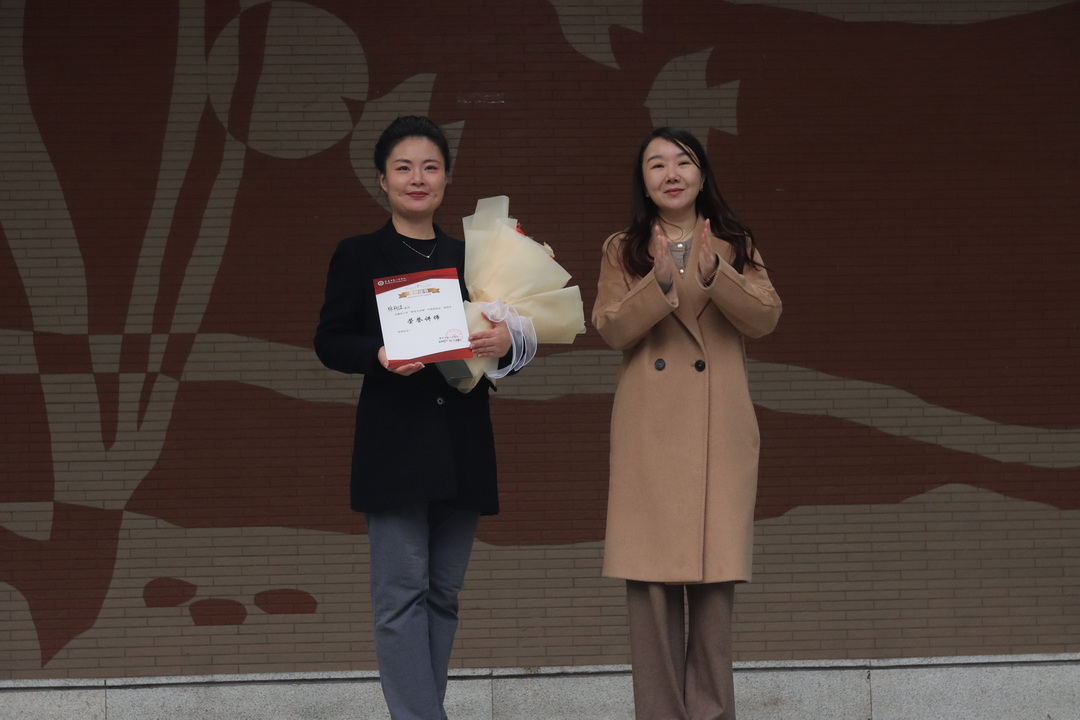 张丽佳女士分享结束后,重庆八中学生处主任罗来莉老师为张丽佳女士颁发朝会大讲堂荣誉讲师证书,并赠送纪念品。