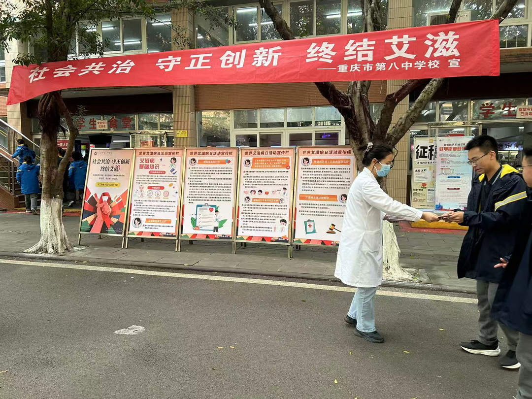 在第38个“世界艾滋病日”来临之际,为响应国务院防治艾滋病工作委员会办公室相关部署要求,切实筑牢青少年健康防护屏障,重庆八中沙坪坝校区医务室围绕“社会共治,守正创新,终结艾滋”主题,于校园内开展了系列艾滋病防治宣传教育活动,通过直观易懂的科普形式,让科学防艾知识入脑入心,为全校师生营造了健康向上、包容友善的校园氛围。