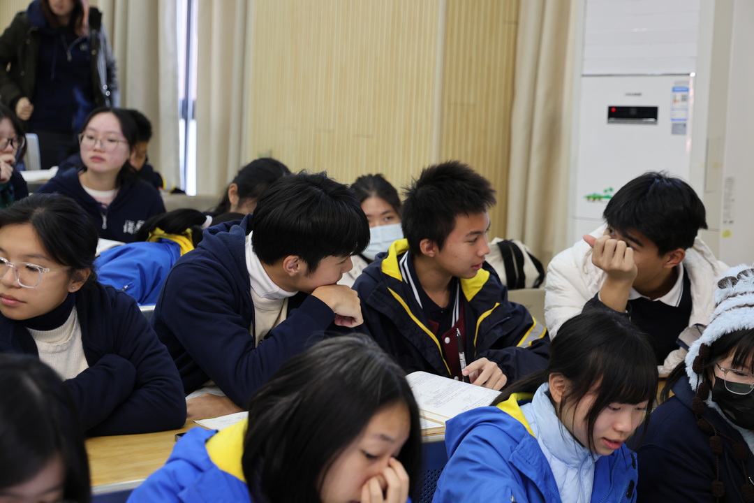 在国际部教室举行的校园生活分享会上,八中国际部学生代表以生动的语言介绍了校园文化、课程特色及社团活动,并与诺雅学子展开热烈交流。双方青年在互动中碰撞思想,共话成长,展现了新时代国际青少年的风采。