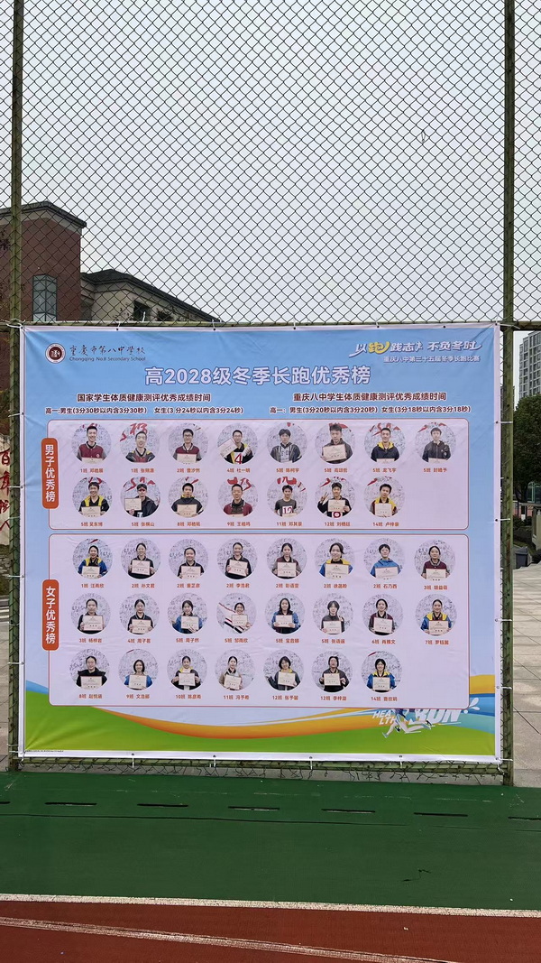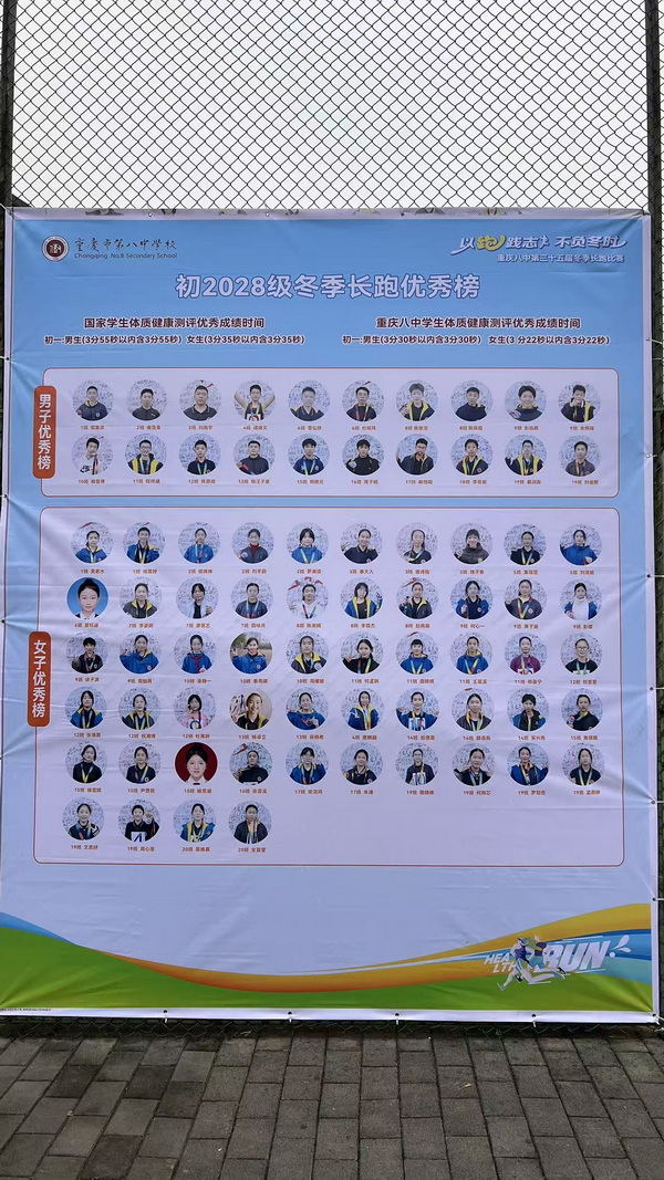 三十五年薪火相传,冬季长跑早已成为重庆八中校园文化的重要组成部分。从第一届赛事的蹒跚起步到如今的规模化举办,这项赛事始终坚守“健康成长、奋勇争先”的初心,见证了一代又一代八中学子在冬日赛道上的蜕变与成长。本届运动会以 “冬季长跑” 为核心,设置了男子1000米、女子800米,既考验同学们的耐力与速度,更注重培养大家的集体荣誉感。