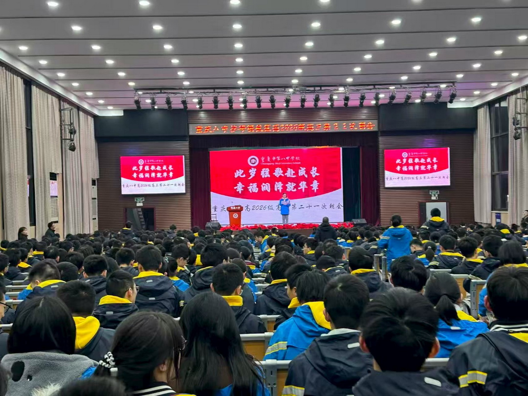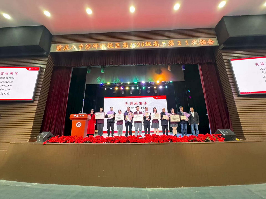 2025年12月29日,重庆八中沙坪坝校区高2026届在大礼堂举办以“此岁弦歌赴成长,幸福润泽就华章”为主题的年度表彰大会,对2024-2025学年中表现突出的学生个人与班集体进行表彰。本次朝会由林乐琪同学主持。
