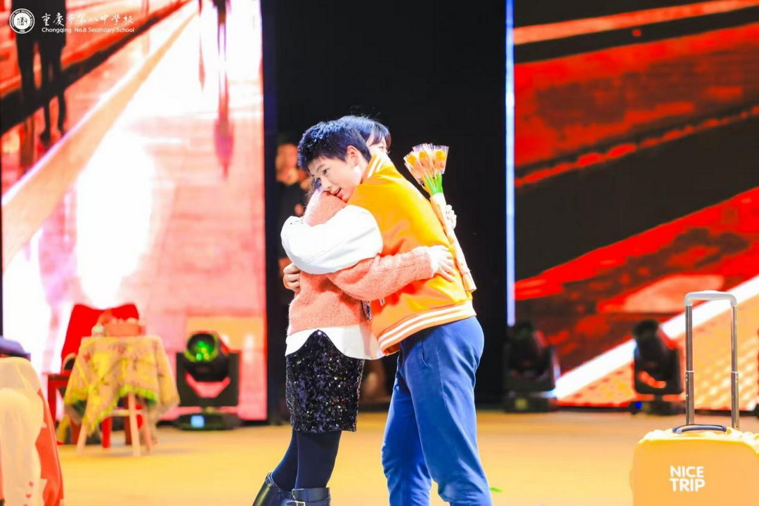 12月25日,重庆八中大礼堂内,第二十四届校园艺术节“初二亲子彩妆秀专场展演”在温馨而热烈的气氛中举行。这场别开生面的活动,打破了传统舞台表演的界限,让初二学生与自己的家人共同参与了创意设计与舞台展示,呈现了一场集创意、亲情与班级文化于一体的视觉盛宴。