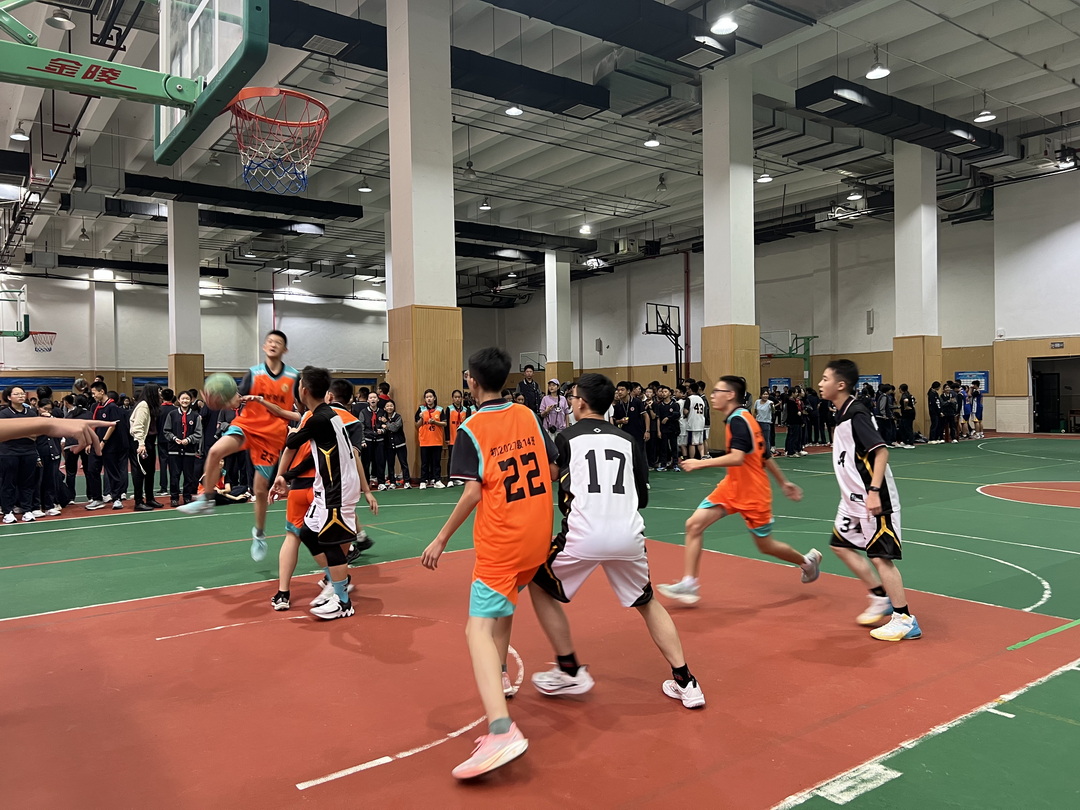 破展现灵动身姿,精准的远投传球彰显默契配合,奋力的篮下拼抢尽显拼搏本色。每一个精彩瞬间都引来场边师生阵阵喝彩,场上比分交替上升、悬念迭起;场下啦啦队助威声浪此起彼伏,醒目亮眼的加油标语与整齐洪亮的呐喊声交织,汇成赛场最动人的风景线。经过多轮比拼,初2027届6班凭借稳定的发挥、默契的团队协作和精准的战术执行夺得冠军;18班奋勇拼搏、顽强对抗,斩获亚军;9班凭借出色的赛场表现拿下季军。