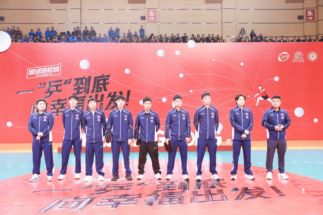 3月8日,重庆八中体育馆内掌声雷动、欢呼声此起彼伏,中国国家乒乓球队男队主教练王皓率领教练员孙逊及王楚钦、梁靖崑、向鹏、周启豪、陈垣宇、温瑞博、黄友政、徐瑛彬8名国家队运动员走进校园,与我校师生近距离互动、切磋球技,共同上演了一场别开生面、热血沸腾的“乒乓盛宴”,让国球魅力浸润校园,让拼搏精神薪火相传。