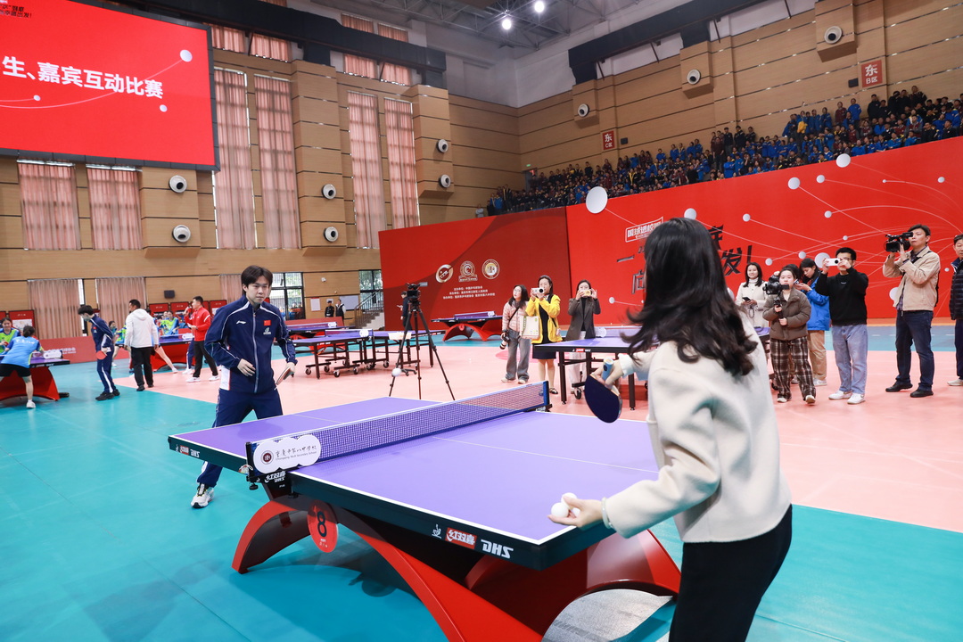 “国乒队员是赛场上的王者,但今天他们更像是亲切的大哥哥。”现场参与互动的我校学生龚静思感慨道,此次互动不仅是一次球技的切磋,更是一次体育精神的传承,国乒队员们的专注与拼搏,让她更加坚定了追逐梦想、奋勇前行的信念。