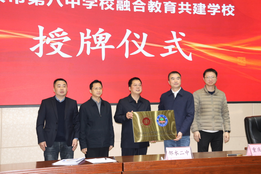 签约仪式后,现场举行授牌仪式,授予邻水二中“重庆市第八中学校融合教育共建学校”牌匾,两校合作迈入实质性落地新阶段。