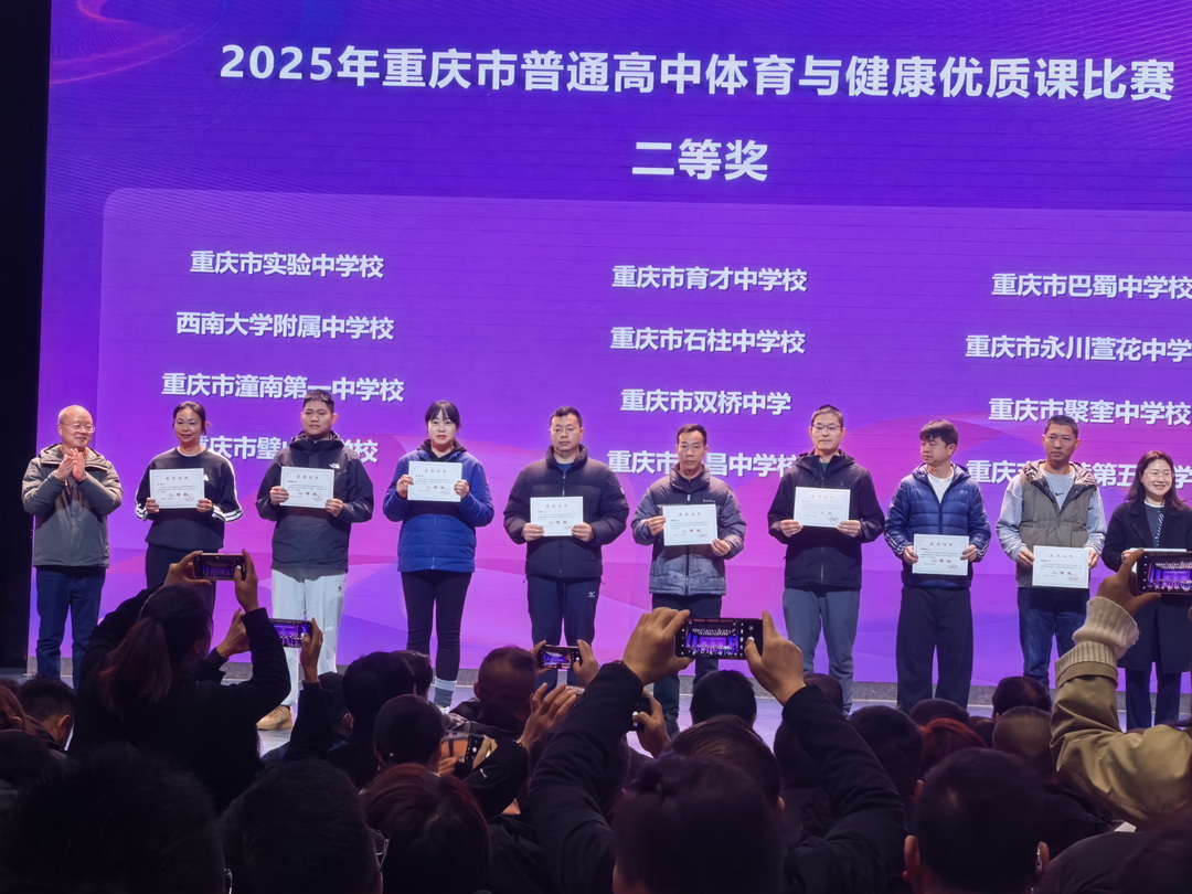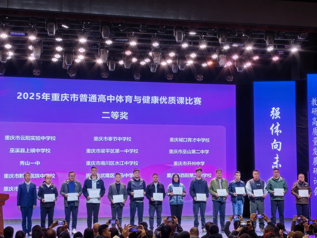 近日,2026年重庆市中学学校体育教研高质量发展研讨会在南开中学隆重举行。研讨期间,大会对2025年重庆市普通高中体育与健康优质课竞赛的获奖者进行了集中表彰和颁奖。朱艳高中体育与健康特级教师工作室凭借扎实的教研积淀、创新的教学理念以及全体成员的协同发力,在此次表彰中脱颖而出,成功斩获4个市级一等奖、2个市级二等奖,用实力彰显工作室的示范引领作用,更印证了“六边形体育战士”培养模式的显著成效,形成“培养一个、带动一批、辐射一片”的良好态势,助力体育教师突破发展边界、实现专业进阶,为教育高质量发展筑牢坚实根基。