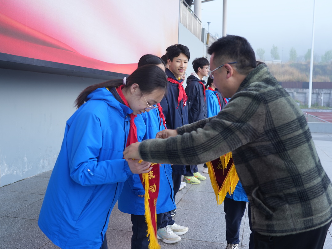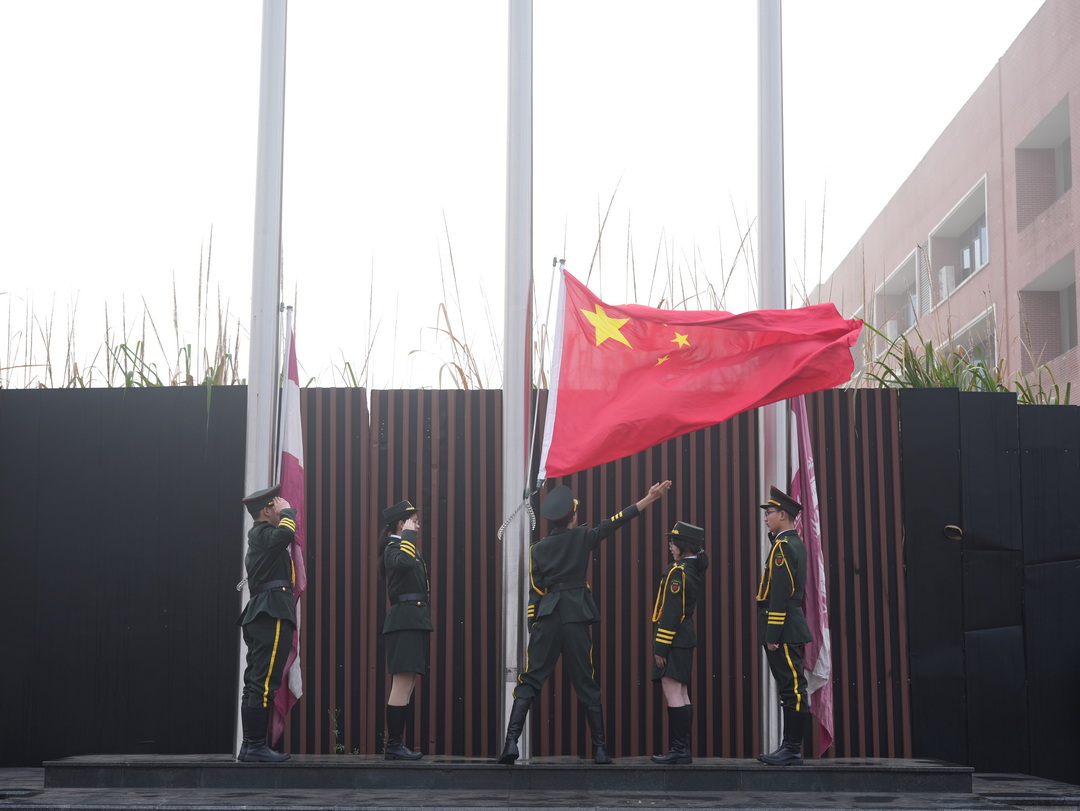 3月31日清晨,重庆市八中龙兴中学校全体师生在春风中齐聚一堂,举行了2025—2026学年下期第5周的升旗仪式。本次升旗仪式以“缅怀先辈承初心,友善文明展风采”为主题,旨在深切缅怀革命先辈与英烈,传承红色精神,同时培养学生友善待人、文明守纪的良好品德,营造和谐友爱的校园氛围。