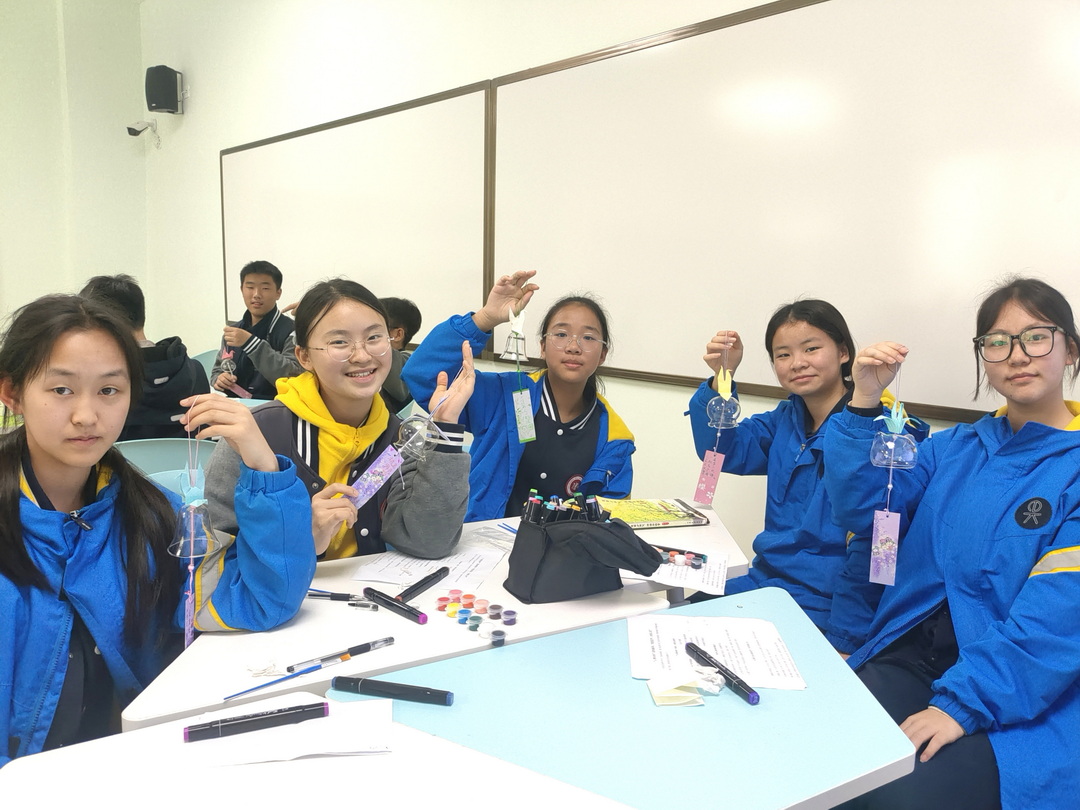 在分享环节,学生们围坐在一起,围绕“我在玻璃罩上画了什么”“我的纸片上写了什么”“千纸鹤代表什么”等话题进行坦诚交流。活动尾声,伴随着轻柔的风铃声,学生们在引导中闭目静思,想象自己的风铃在风中摇曳发声。谢老师指出,风铃如同每个人的内心状态——有时风大响急,有时安静无声,但它始终在那里,属于自己。所有完成的作品将被收集悬挂于心理中心长廊上,成为持续陪伴学生的积极心理资源。