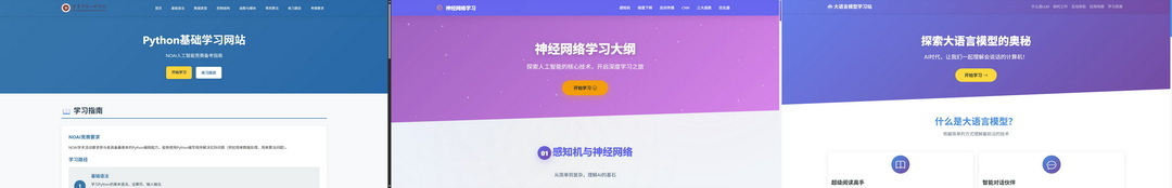 课程资源开发:教师团队自主开发系列学习资源,包括Python基础、神经网络、大语言模型等专题学习网站,配套每周测验试卷及解析,形成系统化备赛资源库;